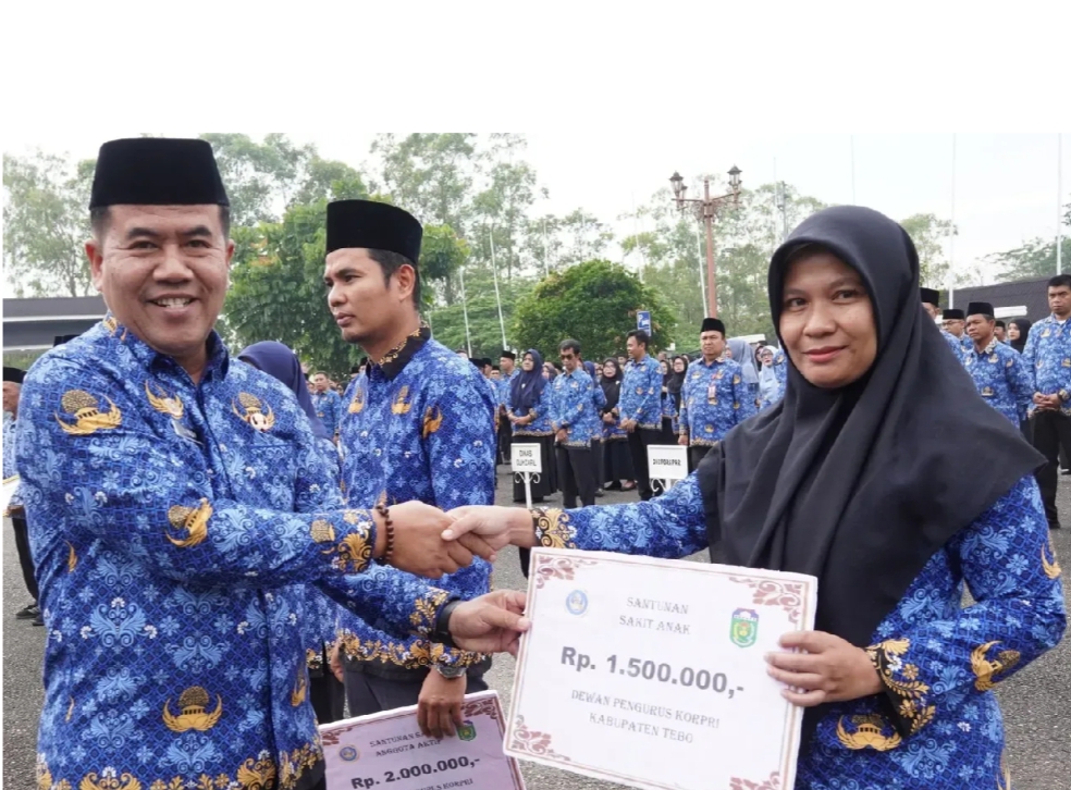 Dalam kesempatan ini, Pemerintah Kabupaten Tebo juga memberikan penghargaan kepada ASN yang memasuki masa purnatugas bulan Juli 2025, serta santunan dari Korps Pegawai Republik Indonesia (KORPRI) kepada anggota aktif sebagai bentuk kepedulian dan apresiasi atas dedikasi pengabdian kepada negara.
